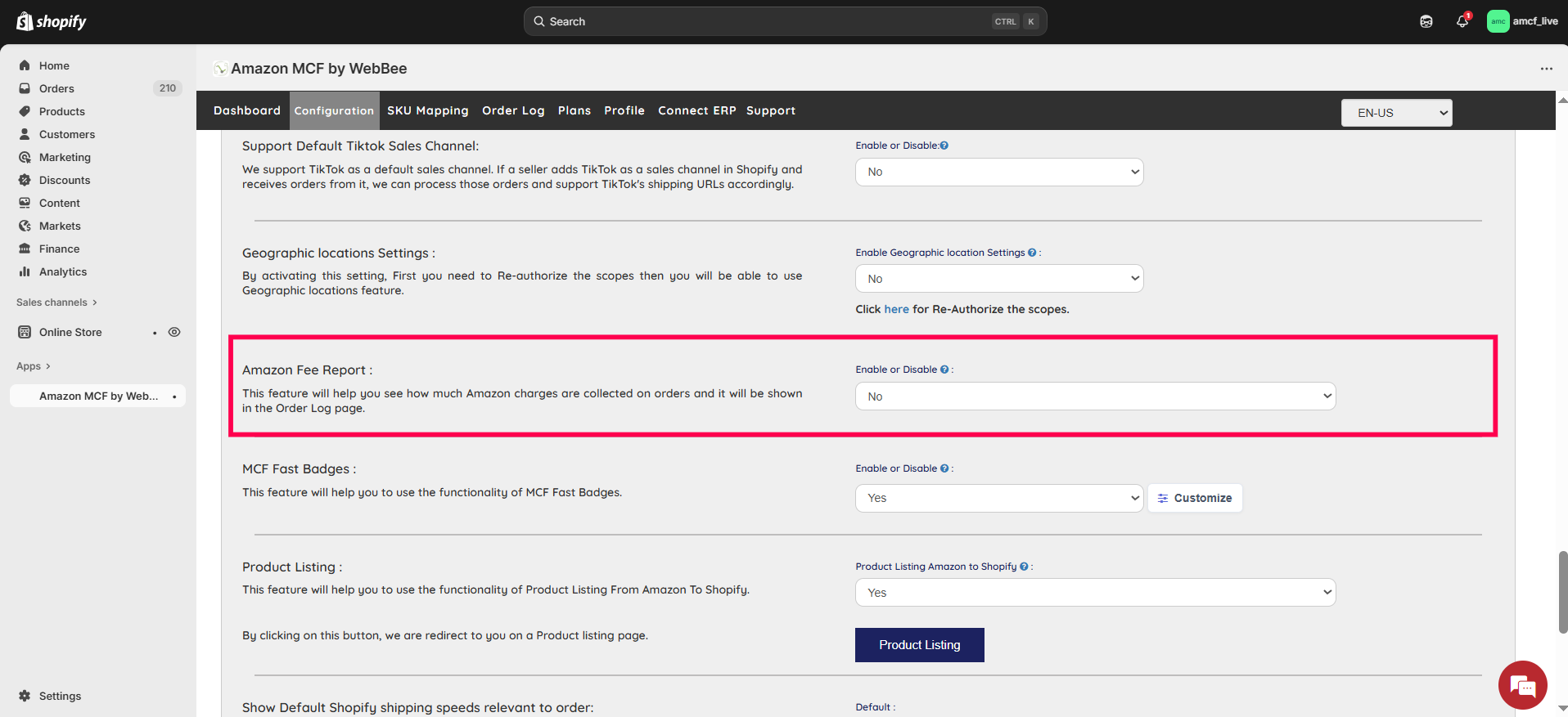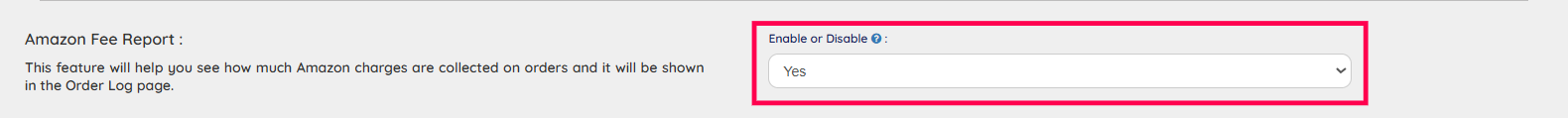 By default, the Amazon Fee Report is disabled. To enable this setting, select Yes from the drop-down.