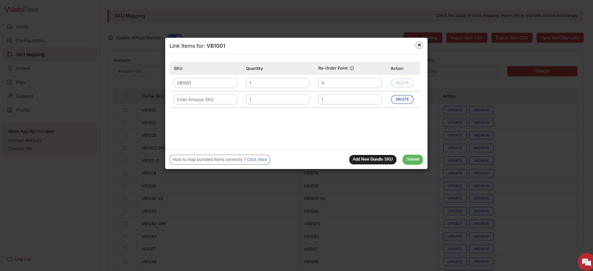Our app supports bundling, allowing you to ship a specific number of items from your Amazon FBA using a single TikTok SKU. Simply enter the desired quantity in the "Quantity" field and click the "Submit" button.