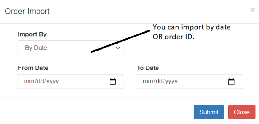 You can import past orders either based on their dates OR order IDs. Once you have chosen your criteria, click on the Submit button. Below is a screenshot just to help you understand this visually.