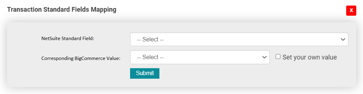 - To check a NetSuite checkbox i.e. (standard transaction field), once a transaction syncs to NetSuite from your BigCommerce store, just enter the internal ID of a NetSuite standard field in the "NetSuite Standard Field", check the "Set your own value checkbox", and click on the Submit button.