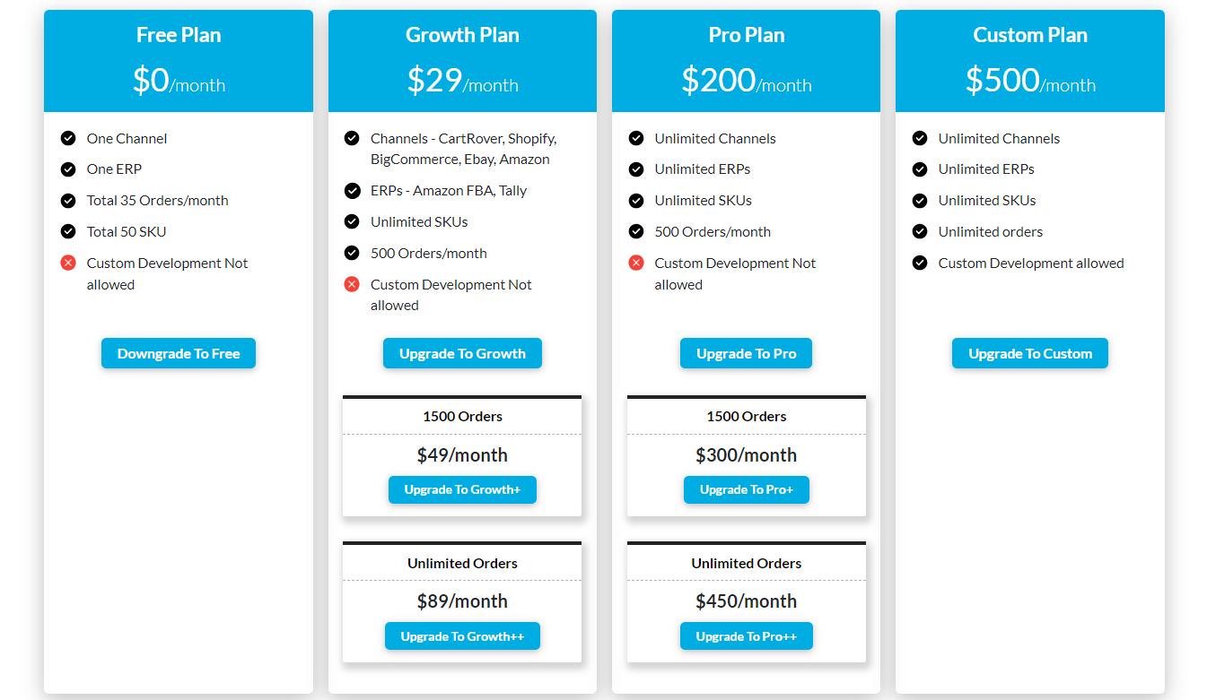 We have multiple billing plans to cater requirements of a small business to a high-volume orders business. To start with we offer 14 days trial, post that we have following plans. Free Plan Growth Plan Pro Plan Custom Plan Click here to know more ...