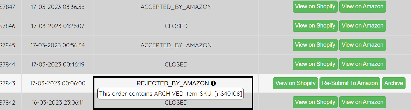 The reason why this or similar orders got rejected by Amazon It seems that there is an issue from Amazon's side, as a result, our app couldn't forward this order to Amazon FBA for its fulfillment. How to fix this error Steps: Wait for 10-15 mins Go ...