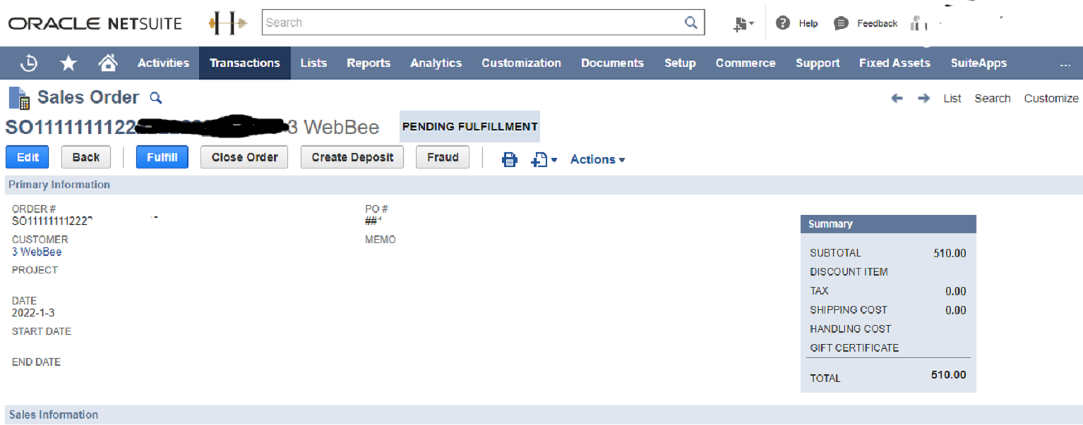 3. Order Edit will only work from NetSuite to Shopify, if an order inside your NetSuite account is in the Pending Approval OR Pending Fulfillment status.