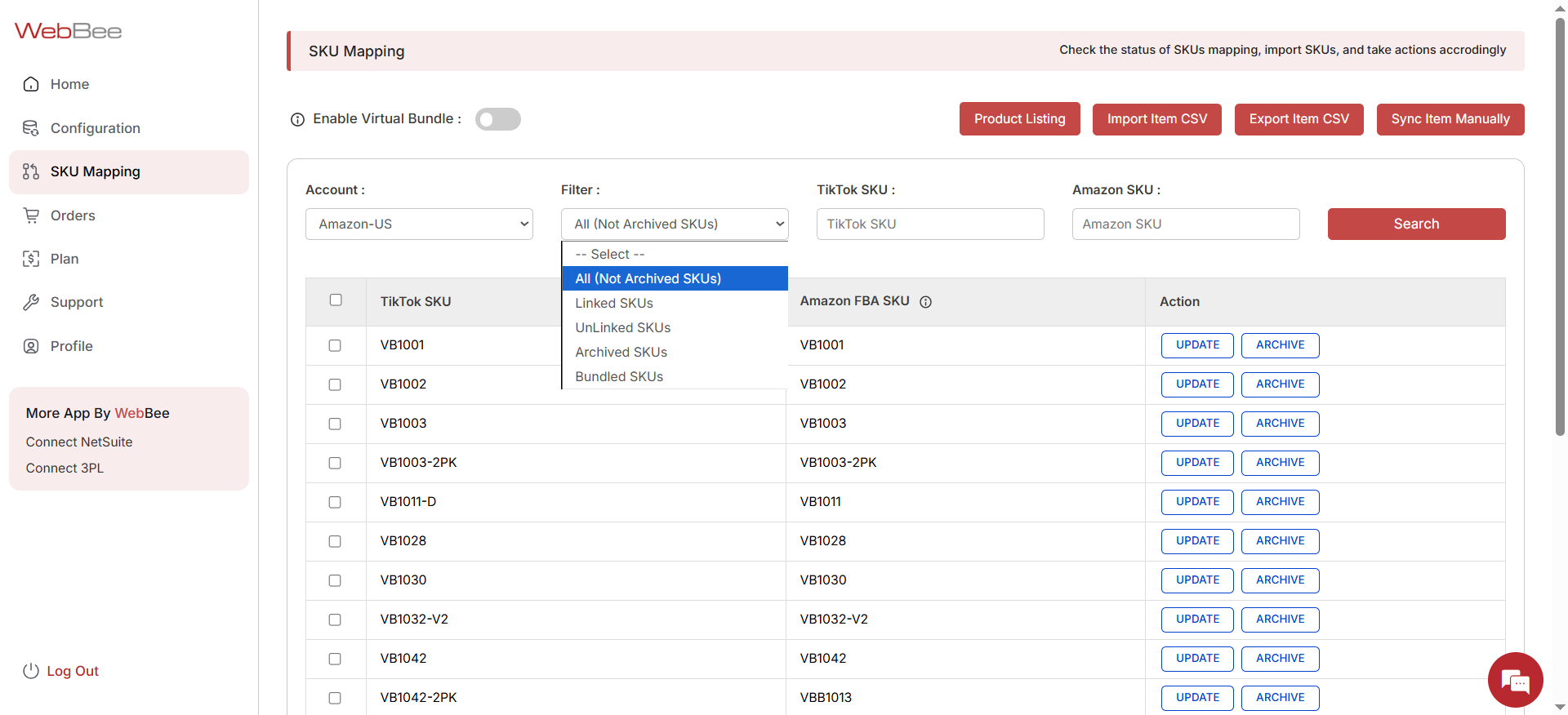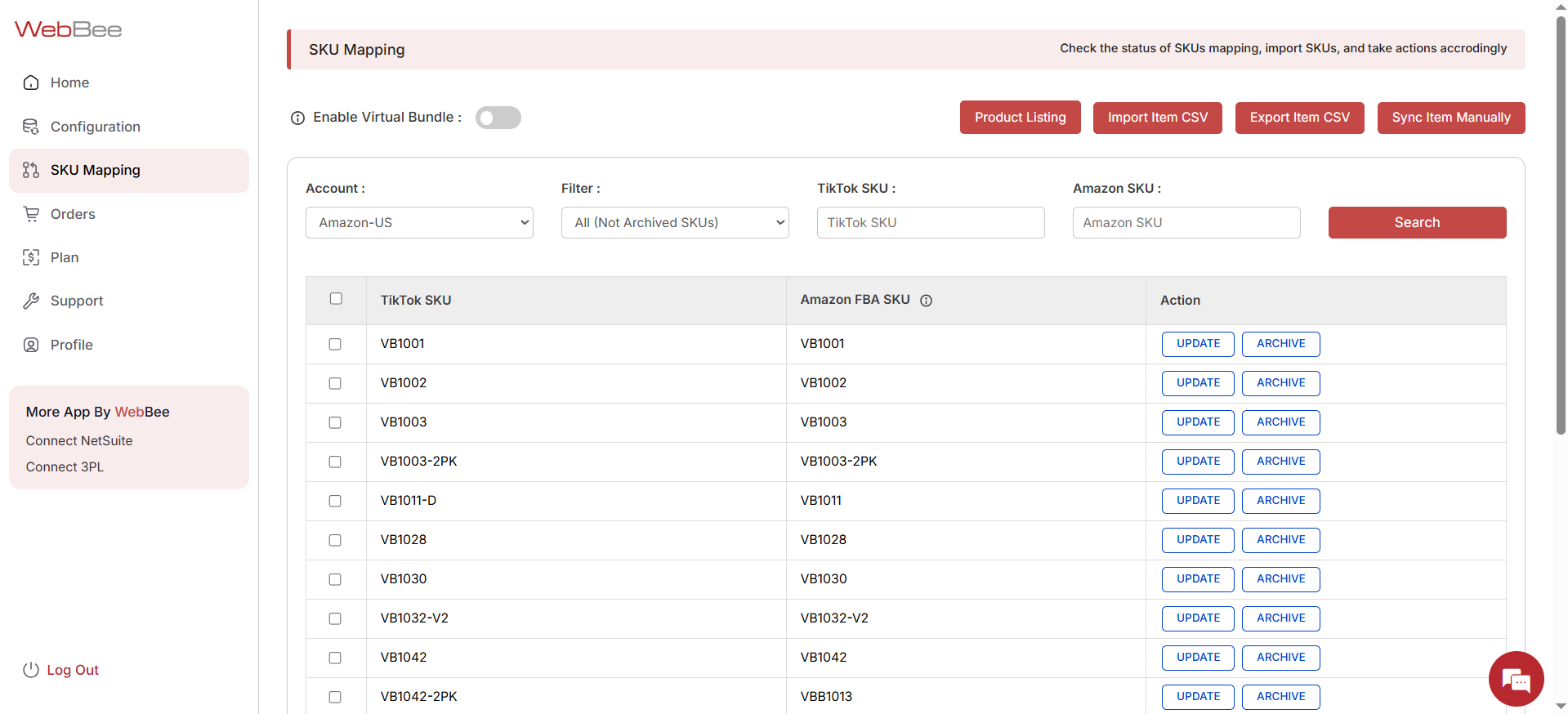You have now successfully mapped your SKUs from Amazon MCF by WebBee to your TikTok Shop.