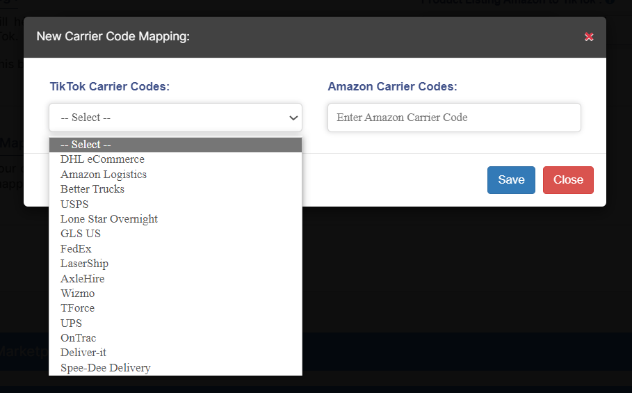 We have a feature in our app to map carriers' codes. This can help you to have tracking numbers syncing from Amazon FBA correctly in TikTok Orders as required with carrier details.