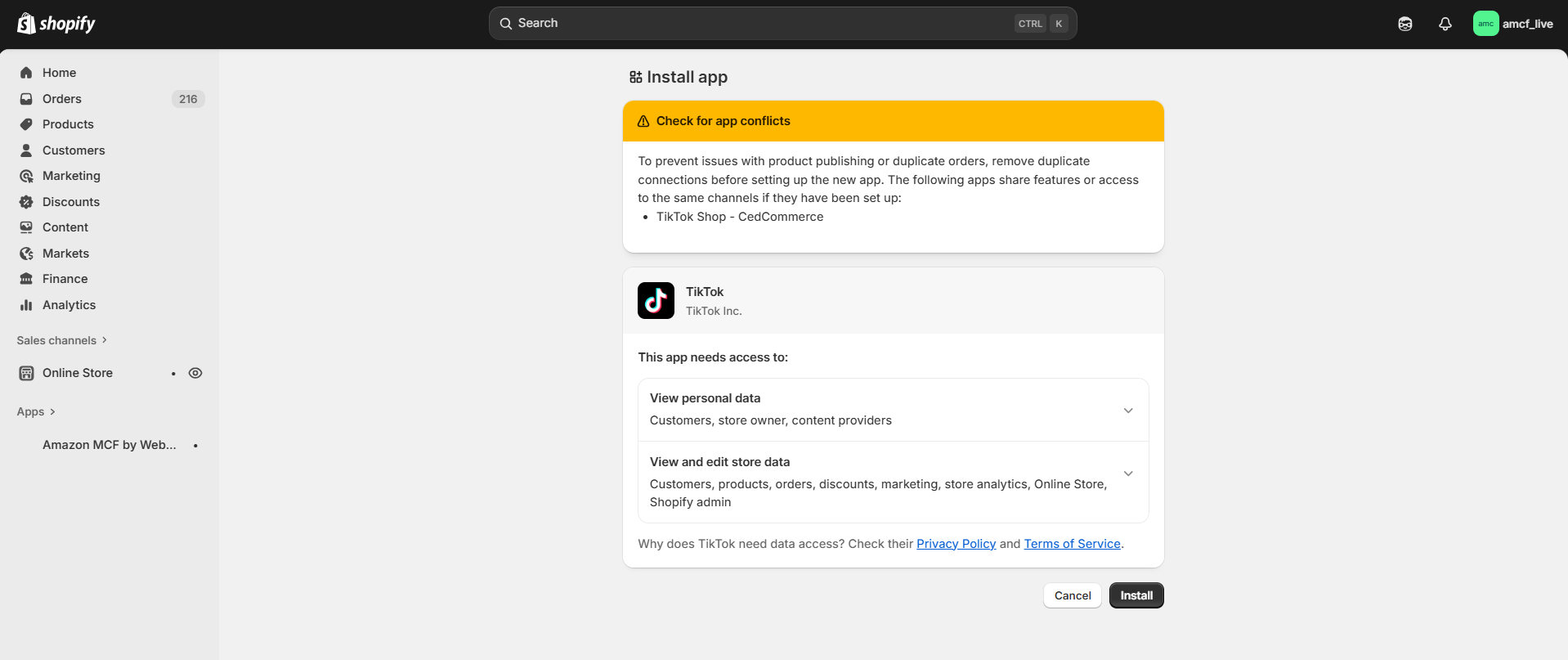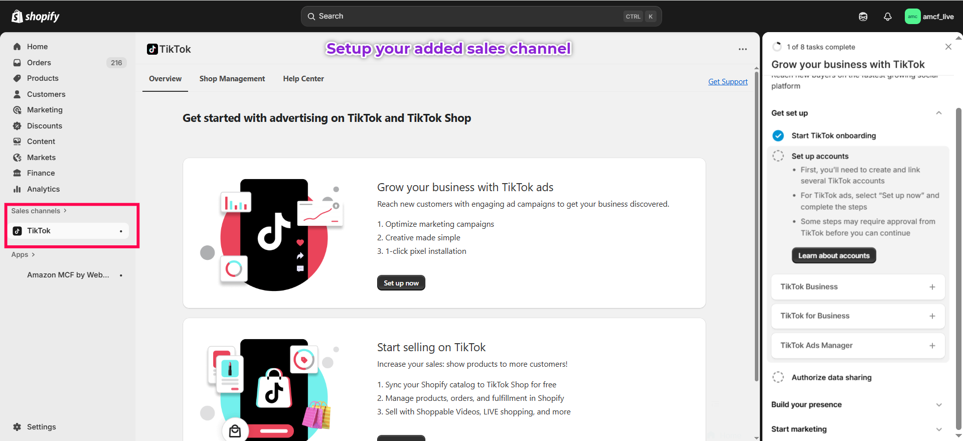 TikTok Sales Channel Installation