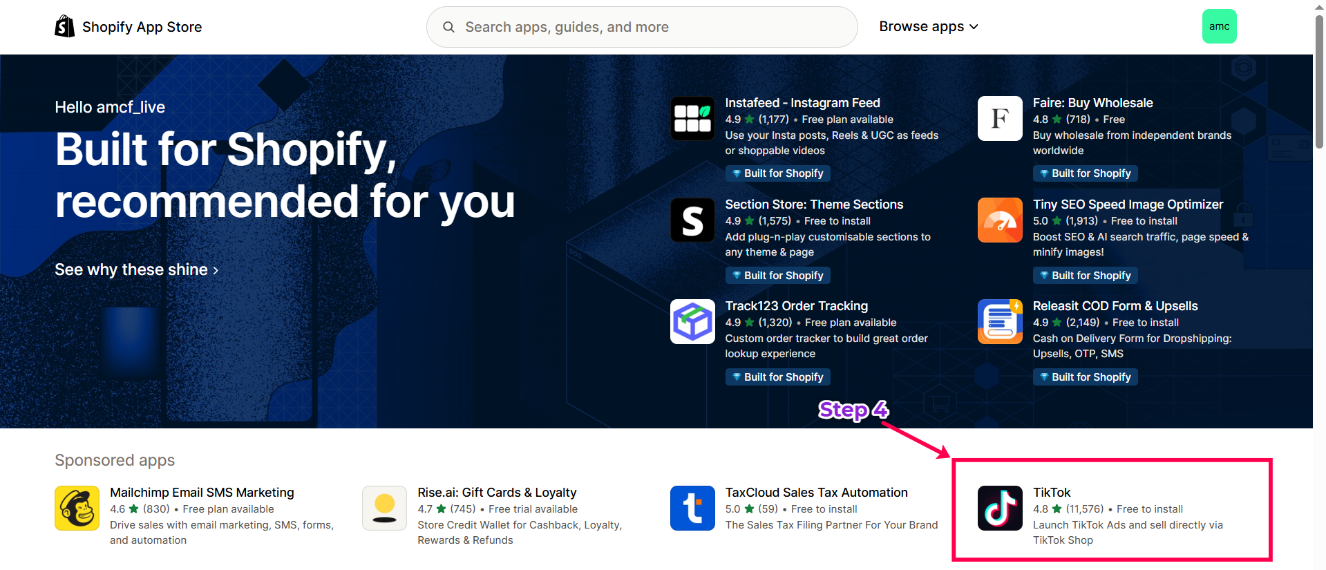- Click on the Shopify App Store.