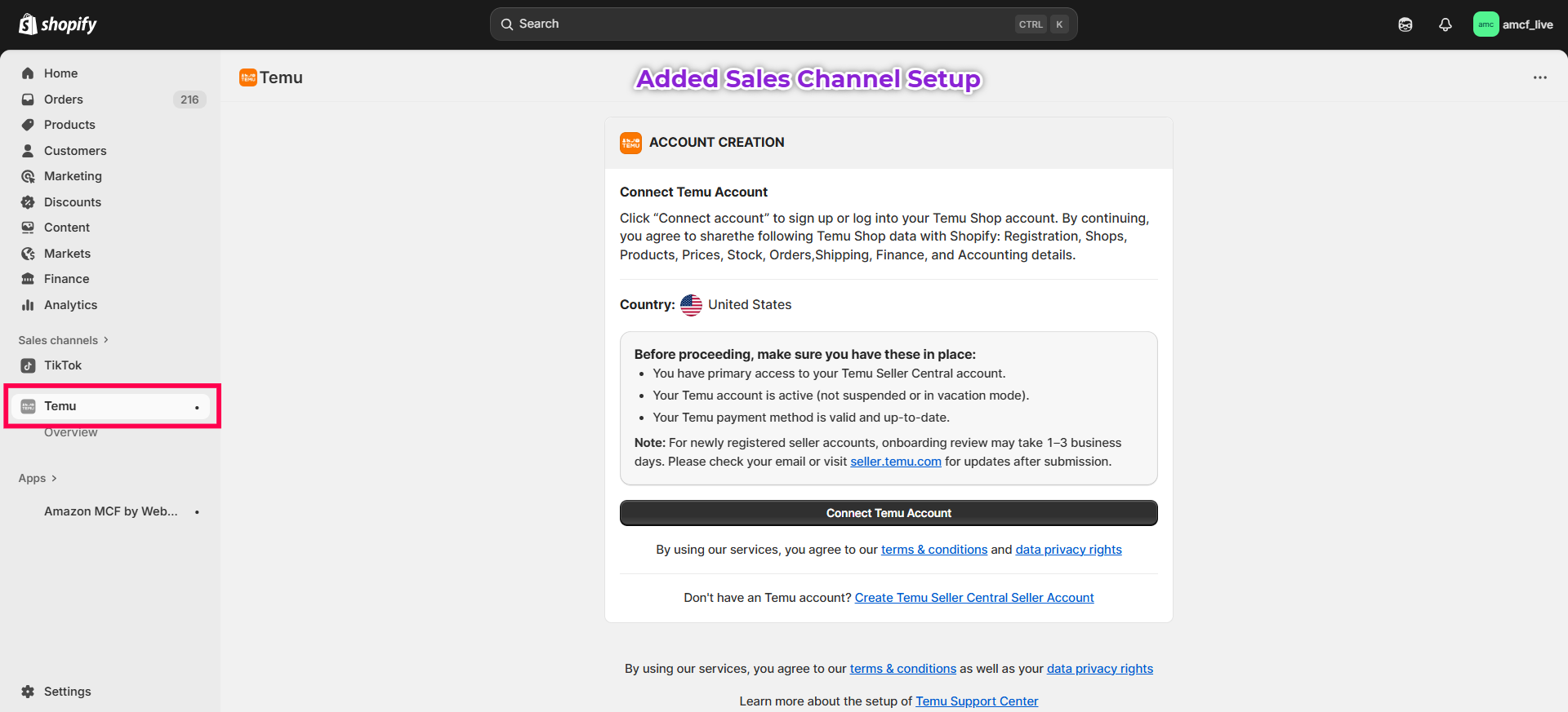 Added Sales Channel Setup