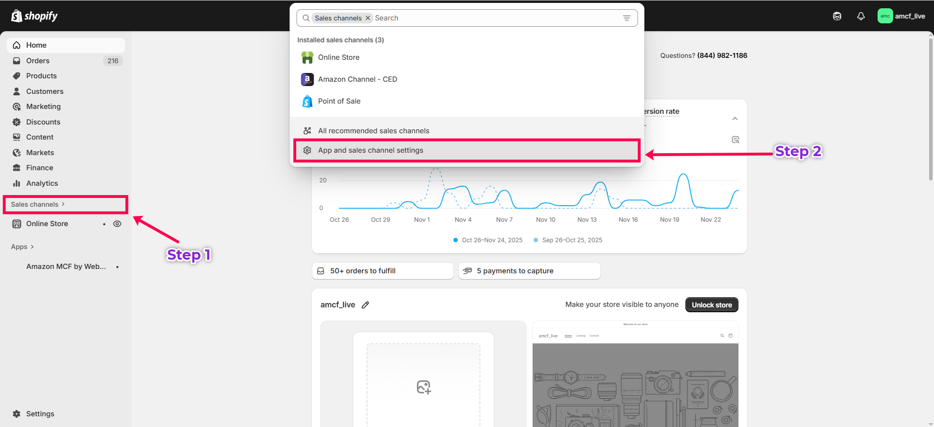 - Click on Settings > Apps and sales channels.