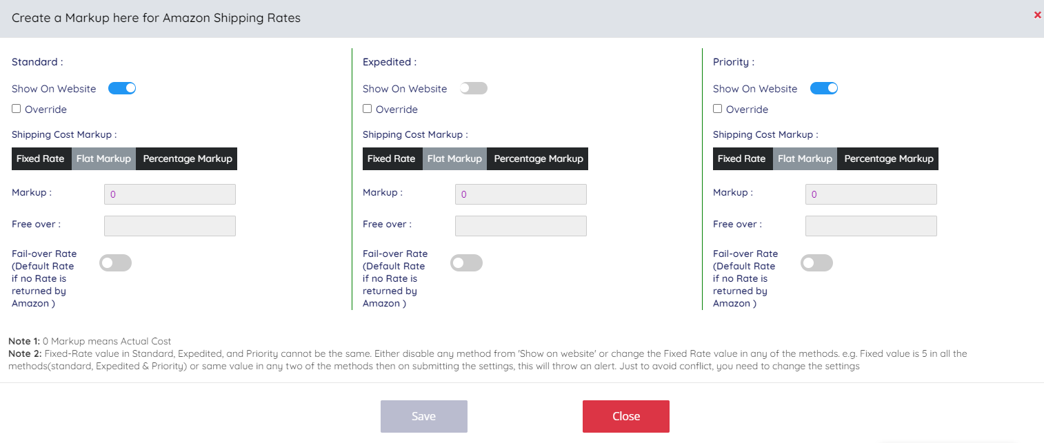 not enter any markup cost (Set as 0) then Amazon will configure default
