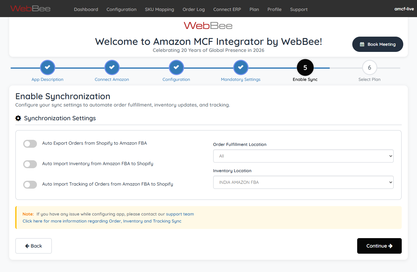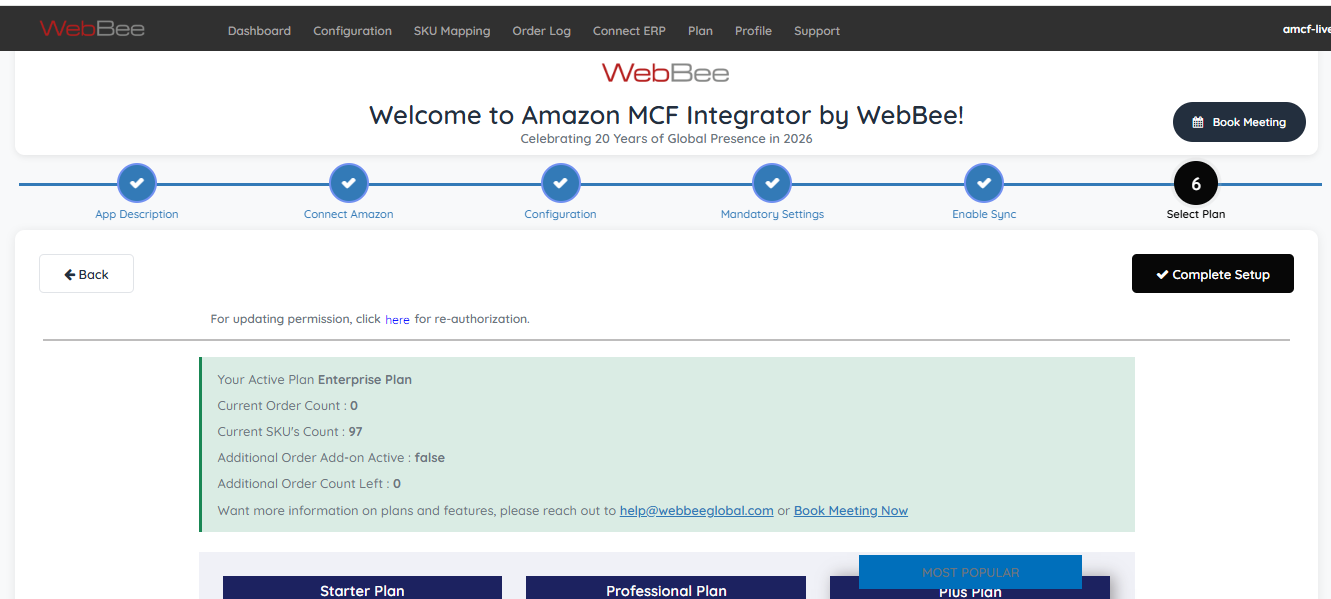 Congratulations, you have completed the onboarding of Amazon MCF by WebBee app.