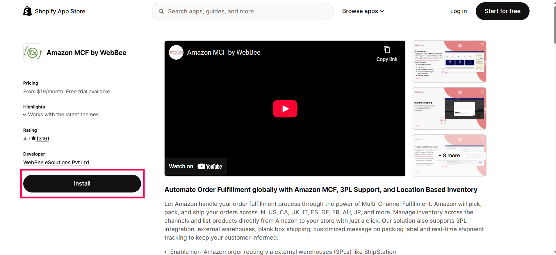 How to install Amazon MCF by WebBee app into your Shopify store?