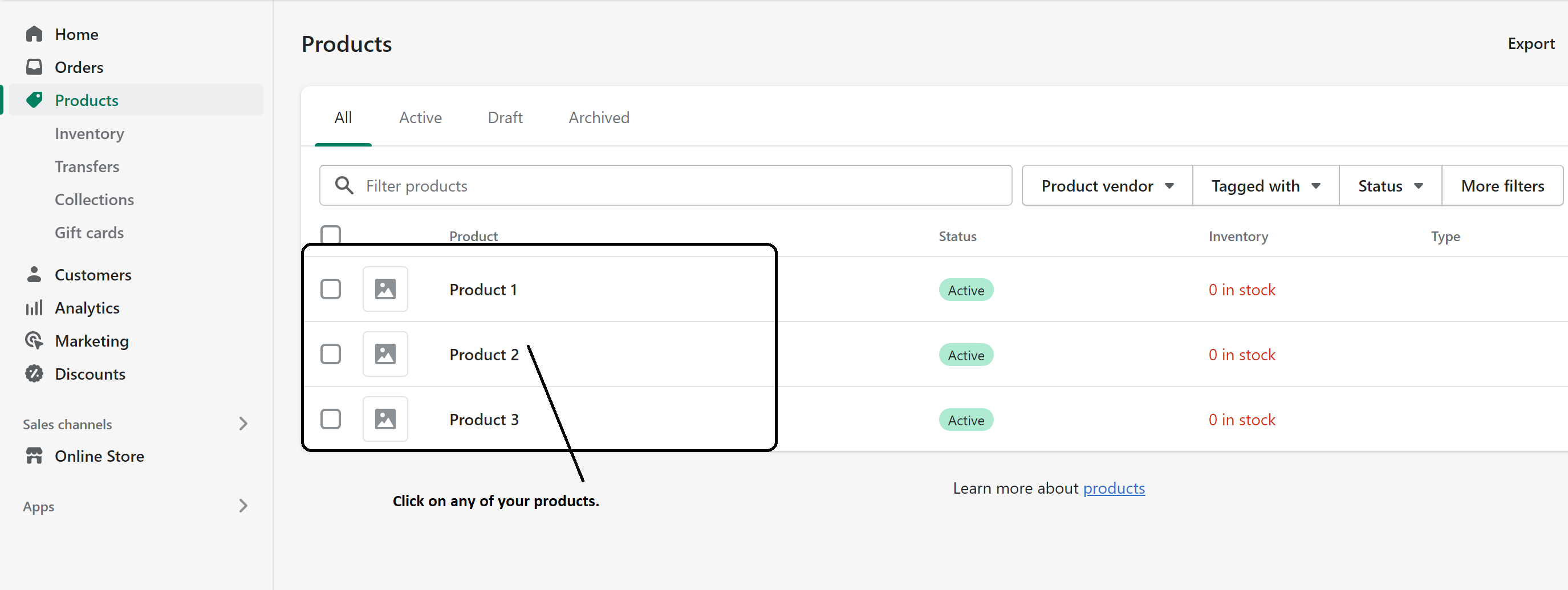click on any of your products. Below is a screenshot to help you understand this visually.