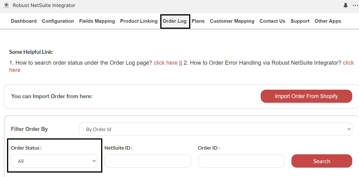 Robust NetSuite Integrator: How to search order status under the Order Log page?