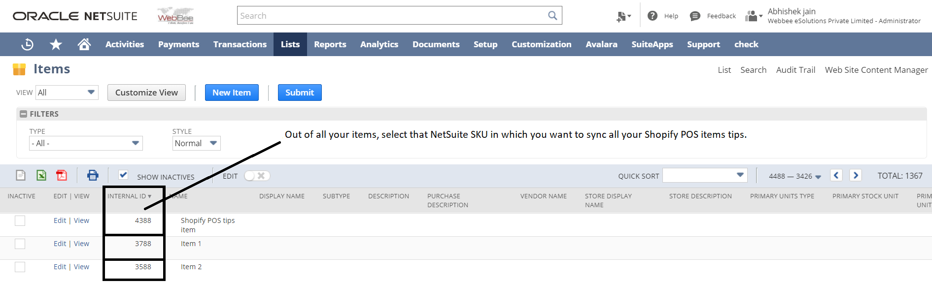 COPY that NetSuite SKU, in which you want to sync all your Shopify POS items tips. Below is a screenshot to help you understand this visually.