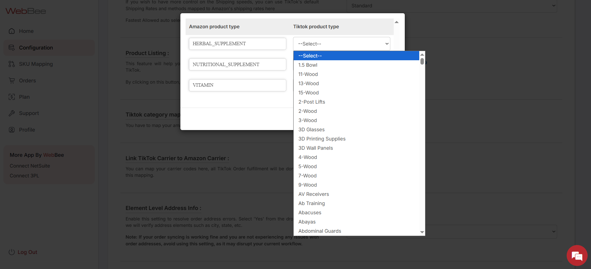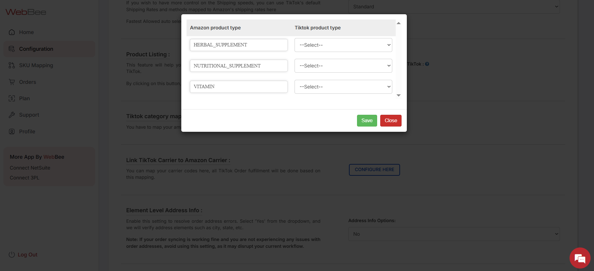 Action: In the dialog that opens, you'll see the current category mappings between your Amazon products and TikTok categories. Adjust these mappings as needed. To reflect how you want your products to be categorized on TikTok, make sure that each Amazon category is accurately linked with the appropriate TikTok category.