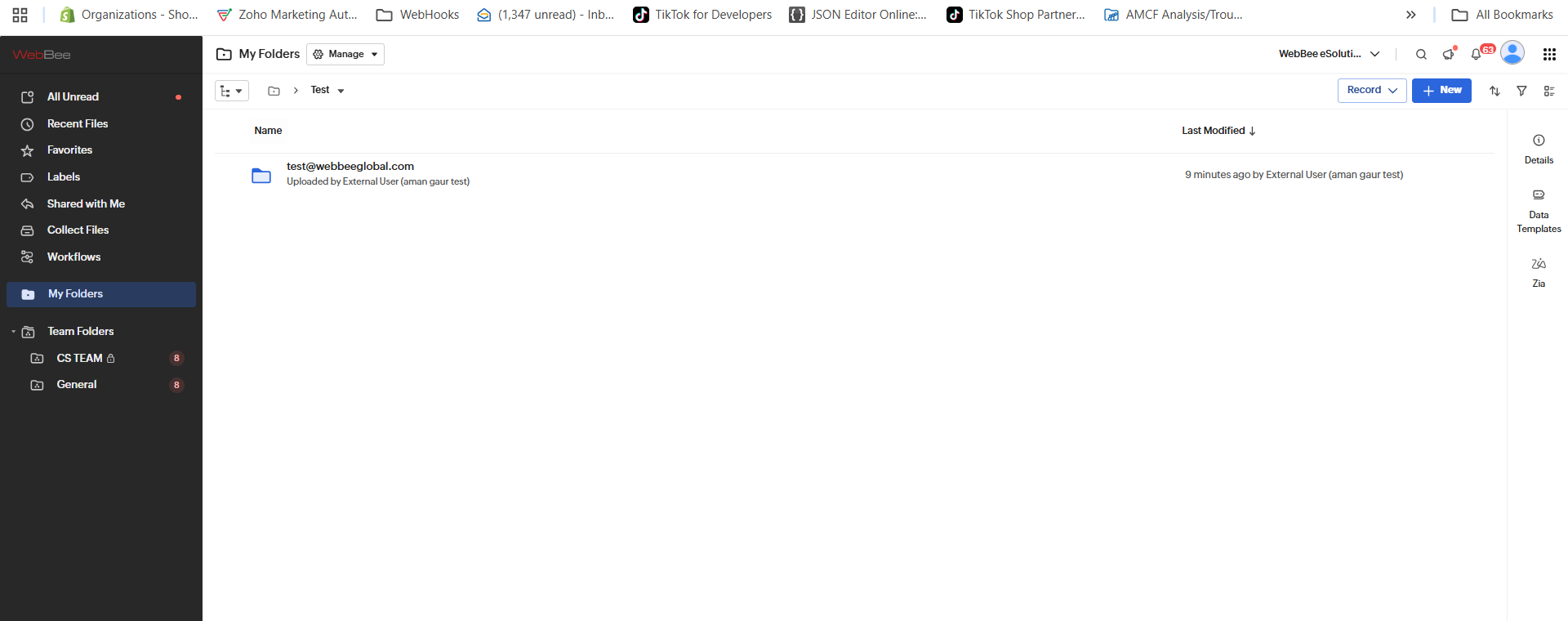With this knowledge base, we will now look at how Webbee secures client credentials. For this, we will be using Zoho Drive. Follow the outlined steps below.