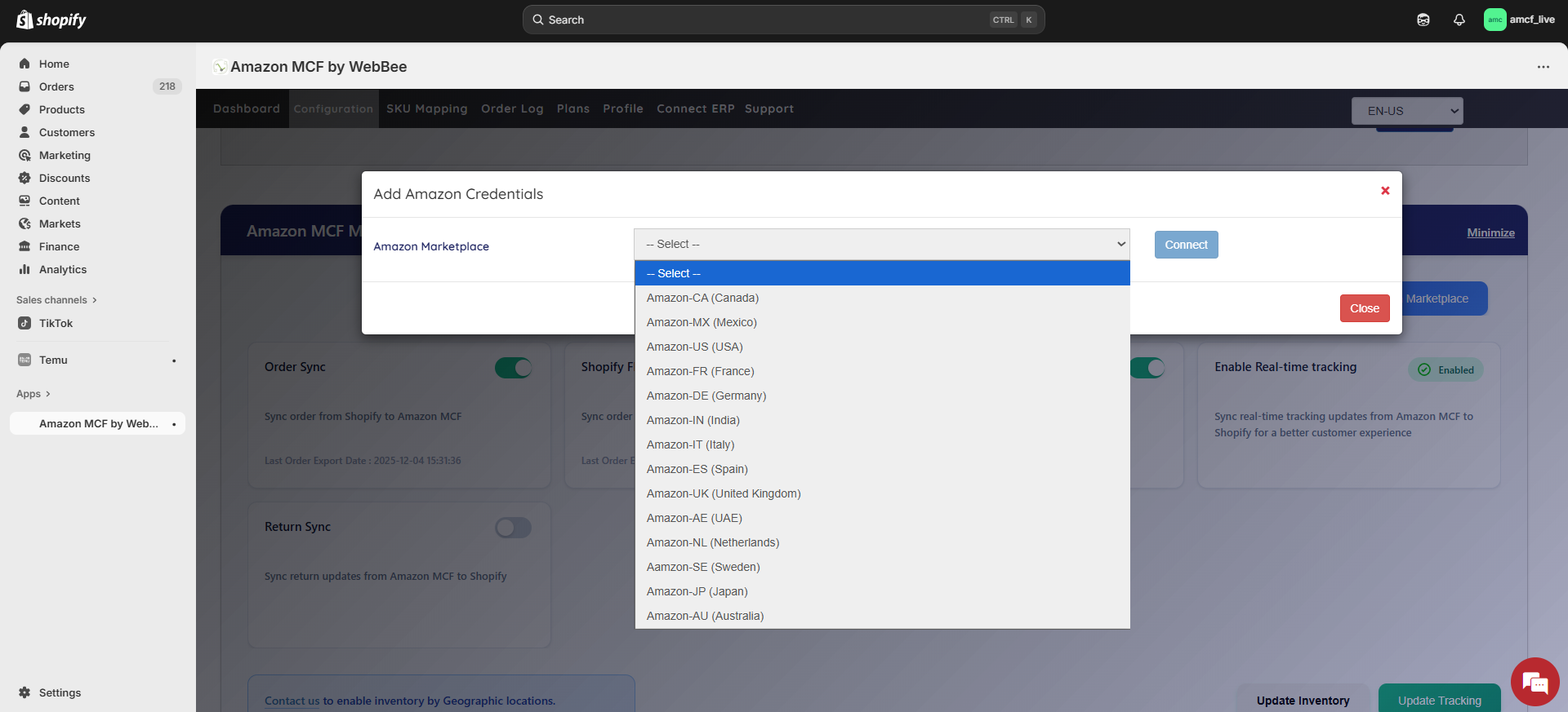 NOTE: The app supports only US & UK/GB FBA marketplace as of now. To enable the configuration, please follow below steps for US FBA, similarly you can add UK FBA as well: Open the App > Click on Configuration > Go to Amazon MCF Settings (Please ...