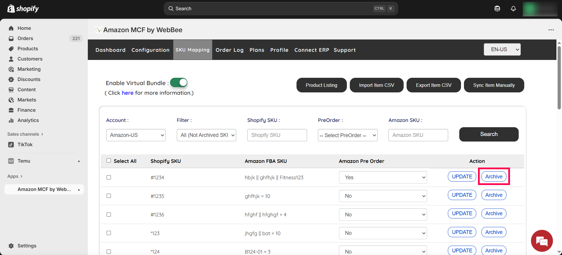 Is it possible within the app to turn off FBA fulfillment for an individual product, but still receive inventory updates for rest of the items from Amazon FBA?