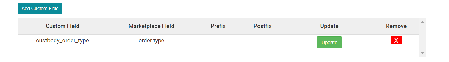 In this box, enter a prefix value, that you want to see in the result of a custom field mapping. For example, let's say that "online" is the source of your WooCommerce orders and in WooCommerce, you are storing it at this "order_source" Marketplace field value, further, have mapped it with this "cust_body_source_identifier" NetSuite Custom field, so to result, this mapping into "onlineOrder" you must enter this "online" in the empty prefix box, further hit the Submit button.
