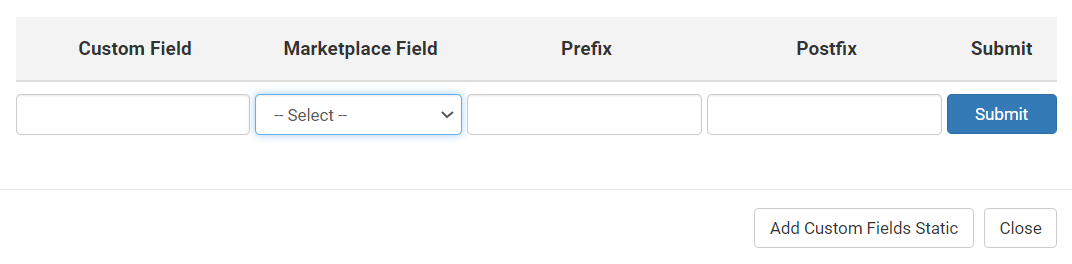 Click on this button if you want to map a NetSuite Custom field with a static entity WooCommerce Marketplace field. Note: This mapping doesn't support Prefix OR Suffix functionality.