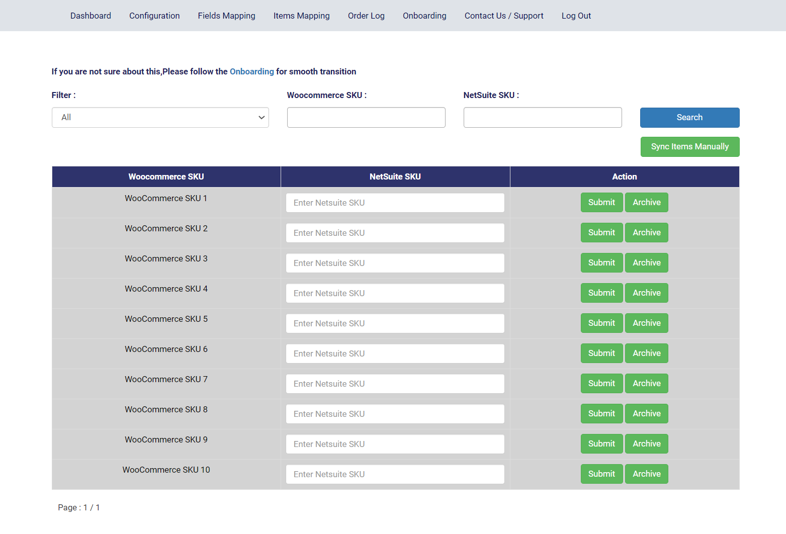 Note: Automatic mapping will be done based on this "NetSuite Item Mapping Field" setting and you can configure it from the Configuration page.