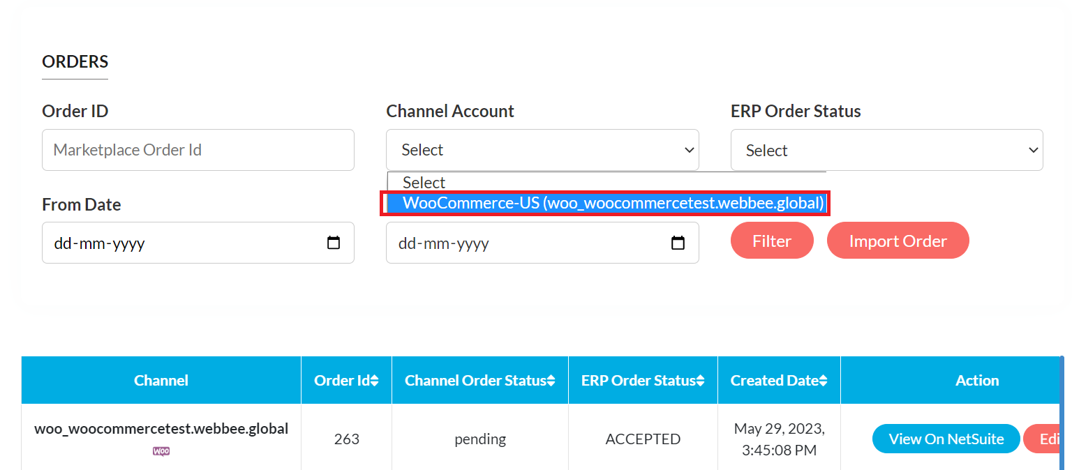 Note: To view the orders on the basis of the channels you can select and then simply click on it to Filter .