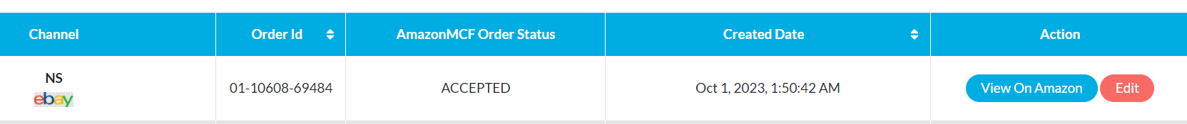 This gets synced from eBay store after every half an hour from order's creation time, and if order sync toggles are turned on in our app, this is synced to Amazon MCF automatically for further fulfillment.