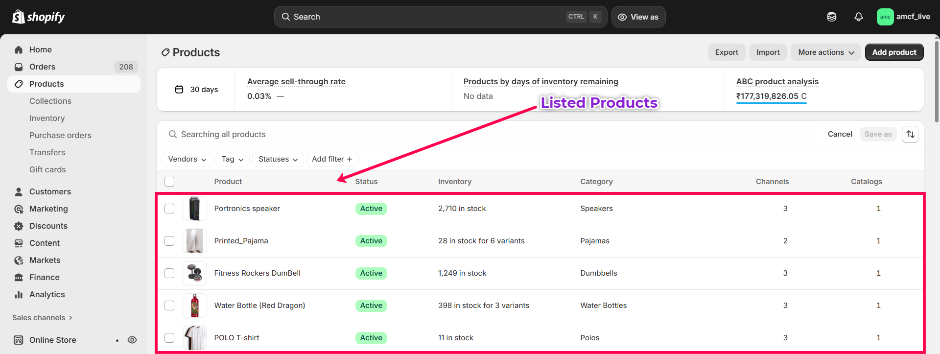 Once all the above steps are completed, you can check your listed products on the Shopify product page.