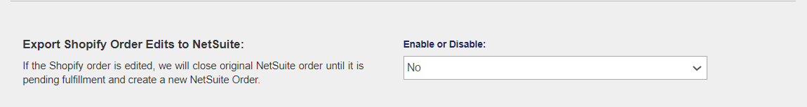 Turn on this toggle , if you want to sync the NetSuite Order edits when they are pending fulfillment back to Shopify.
