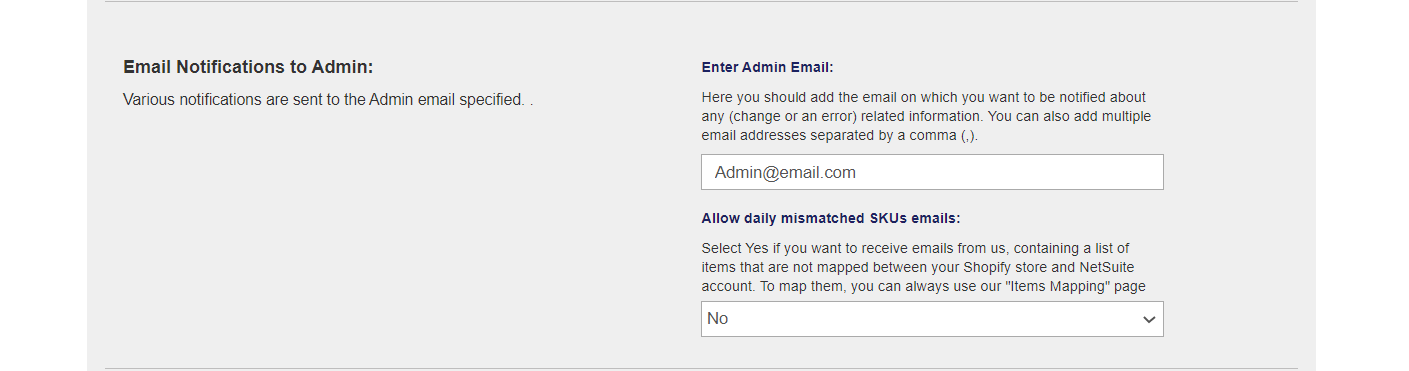 Yes if you want to receive emails from us, containing a list of items that are either not mapped between your Shopify store and NetSuite account OR duplicate inside your Shopify store. To