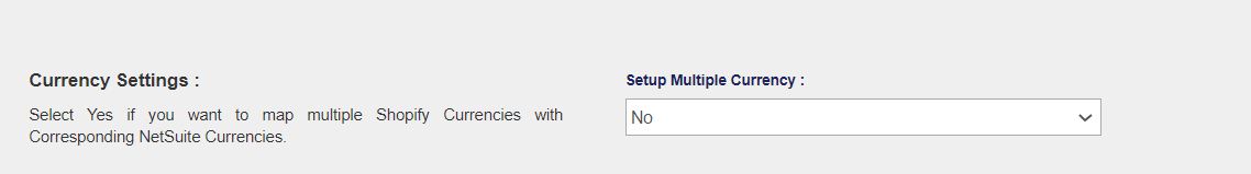 If you are interested in mapping your Shopify currencies with your NetSuite currencies, please select "Yes" from the drop-down menu, further follow this step-by-step guide.