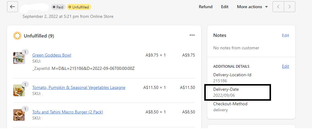 Post clicking you will be seeing something like the screenshot below. In our example, we are interested in reviewing the JSON Key of this "Delivery-Date" Shopify field, and the JSON Key of this Shopify field is this "Delivery-Date".