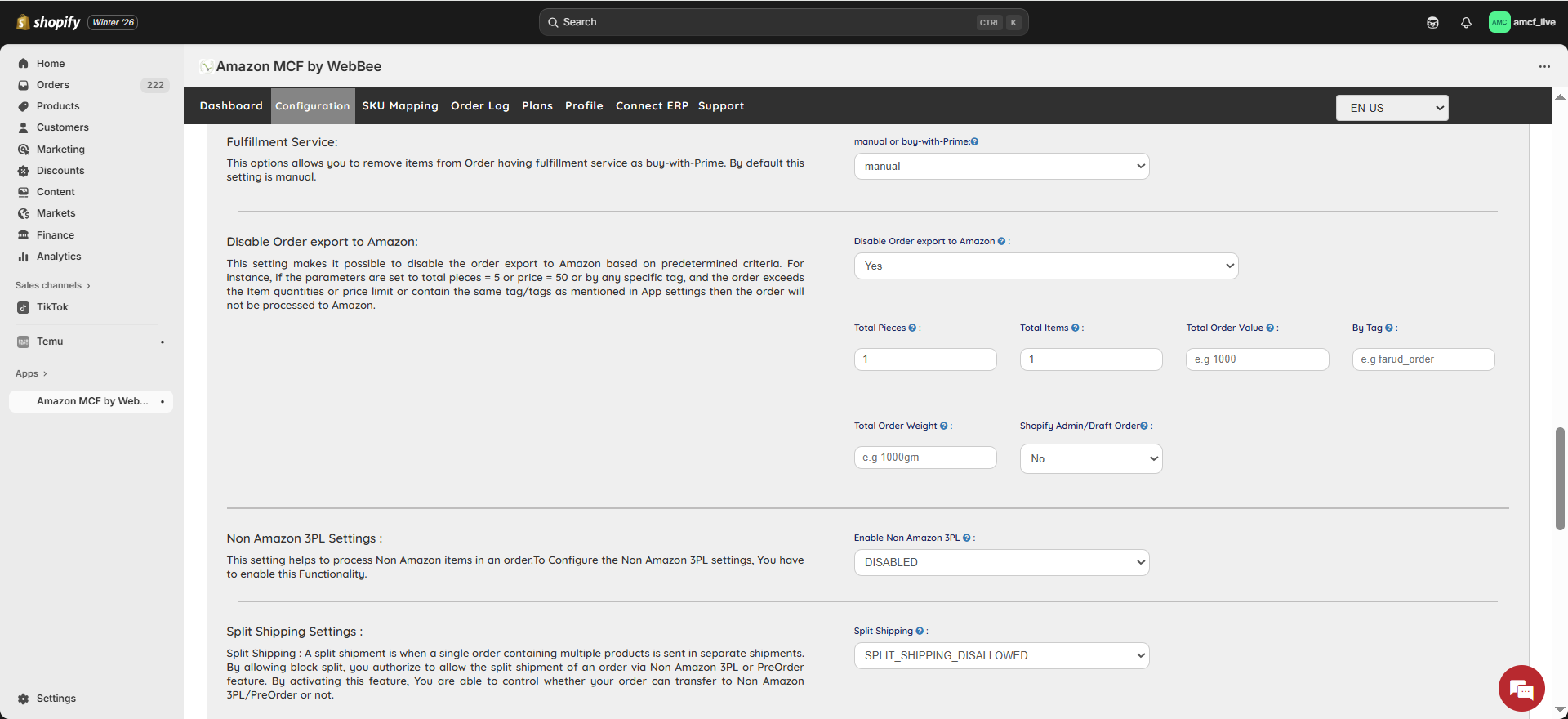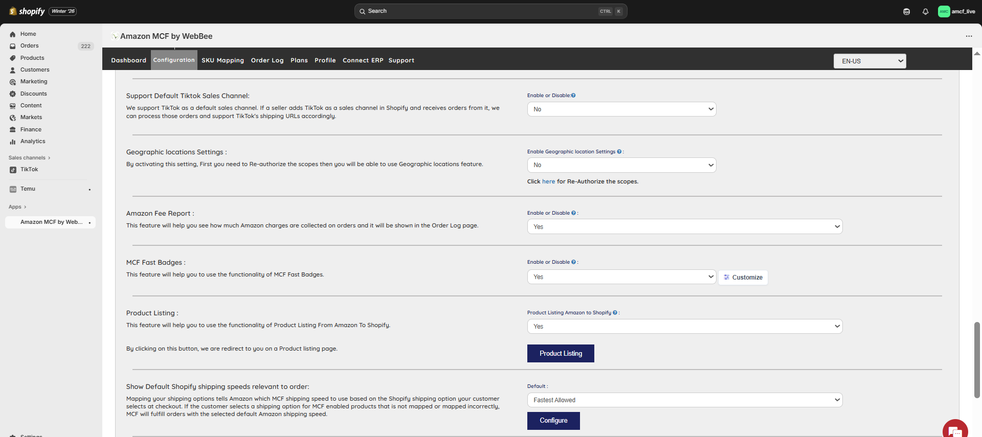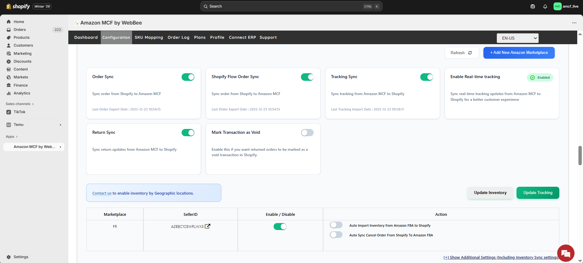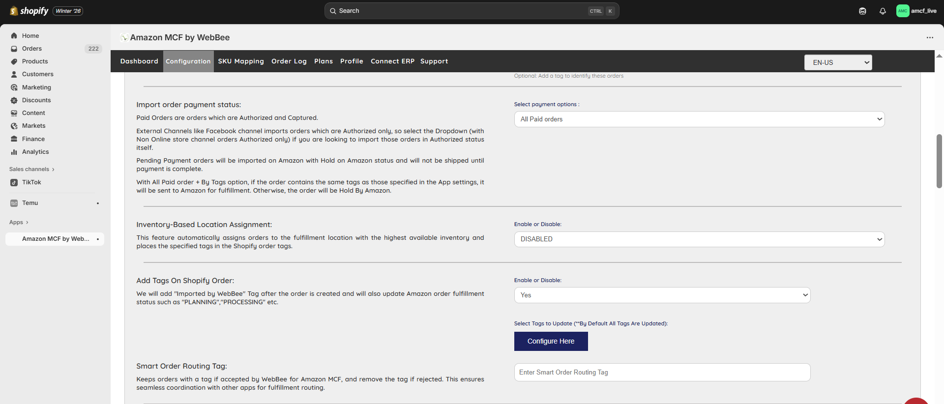 Getting started with your free trial? You can start using this step-by-step guide to connect our Auto Multi-Fulfillment Channel app (Amazon MCF by WebBee app) with your Shopify store. Also, below are the mandatory Shopify settings to configure before ...