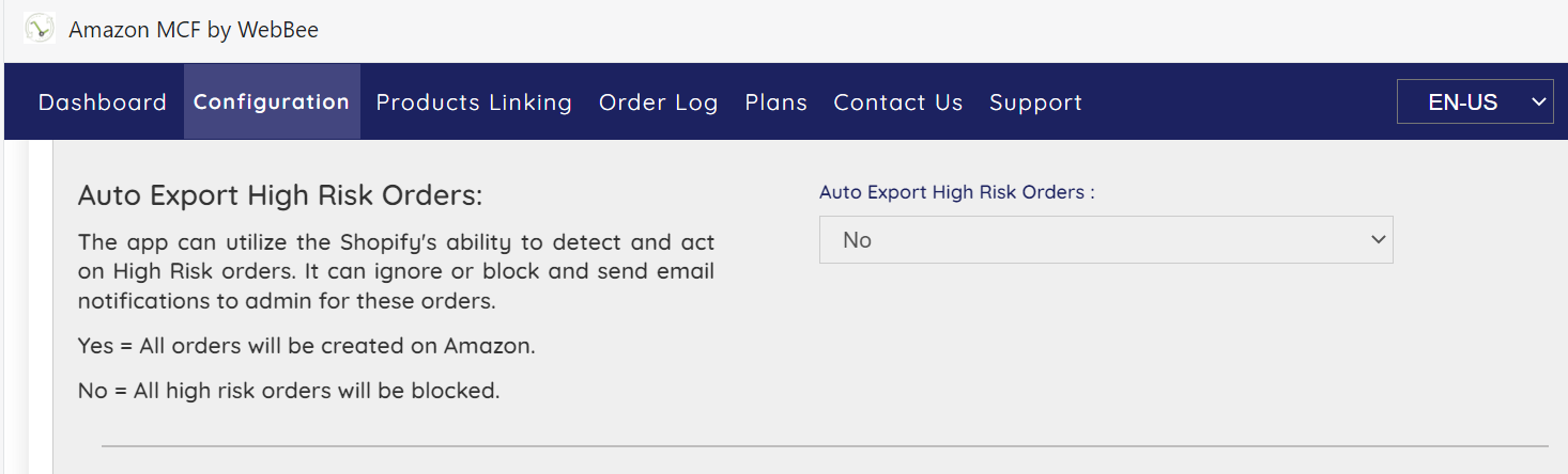 Now, whenever Shopify marks an order as a high-risk order, then our app will not send them to your Amazon FBA marketplaces for their fulfillment.