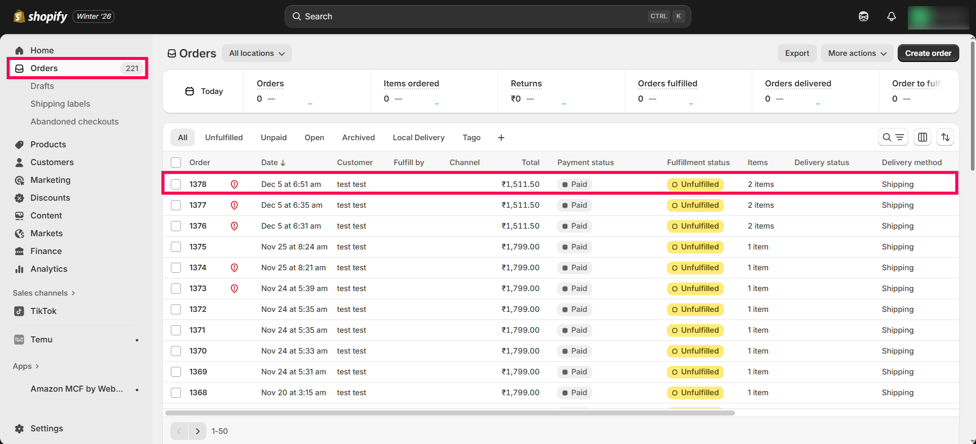 How to view an order inside the app by using "More Actions" menu under orders from Shopify admin store?