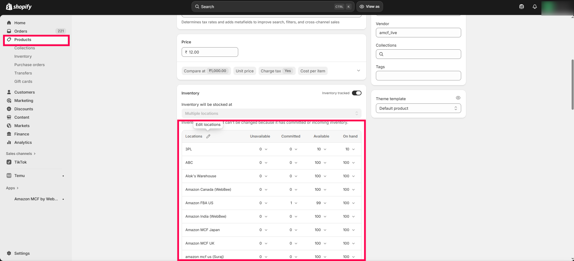Inventory Update from Amazon FBA active products to Shopify Products via Amazon MCF by WebBee APP
