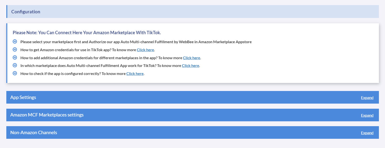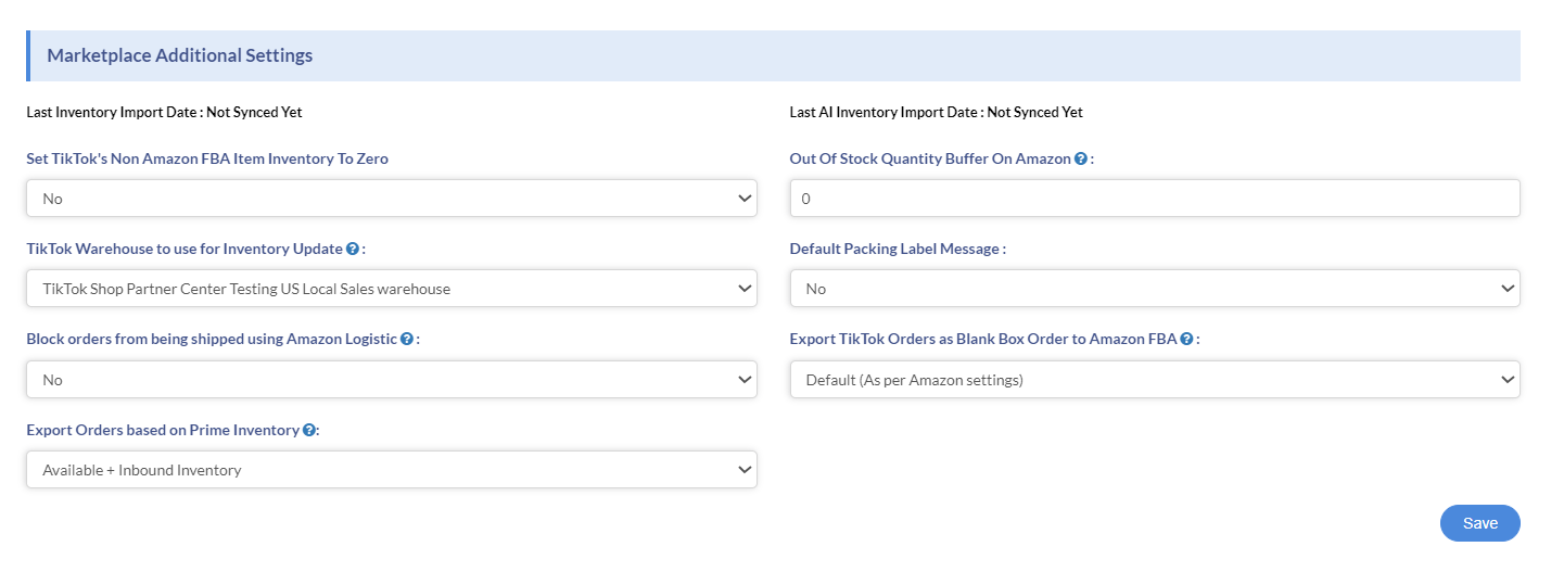 - Select "Use Blank Box for other App orders only", if you want our app to manage your TikTok orders in such a way that it syncs any other Amazon FBA app's orders via Amazon's Blank box.