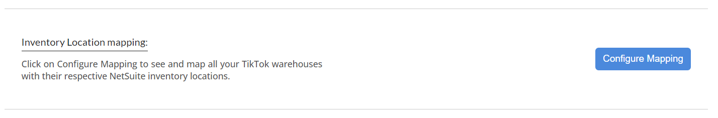 If you want to map a TikTok store location with its respective NetSuite inventory location, please click on the Configure Mapping button, further map the inventory locations. Post mapping, hit the Save button from the bottom of this App Settings section inside our Robust NetSuite Integrator app.
