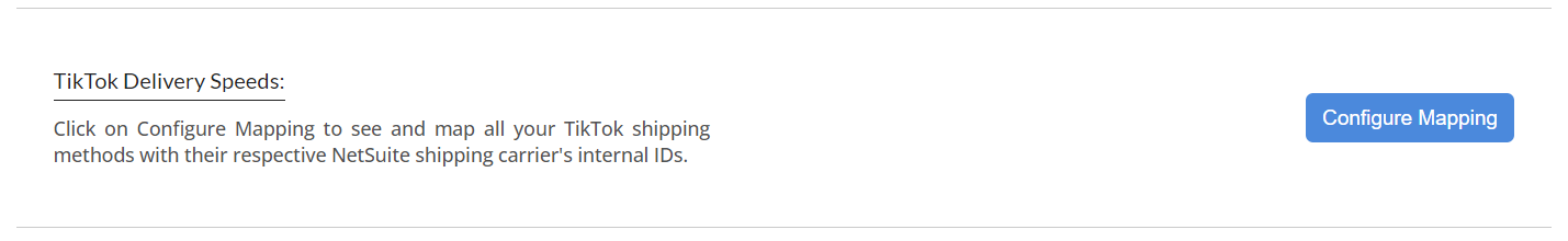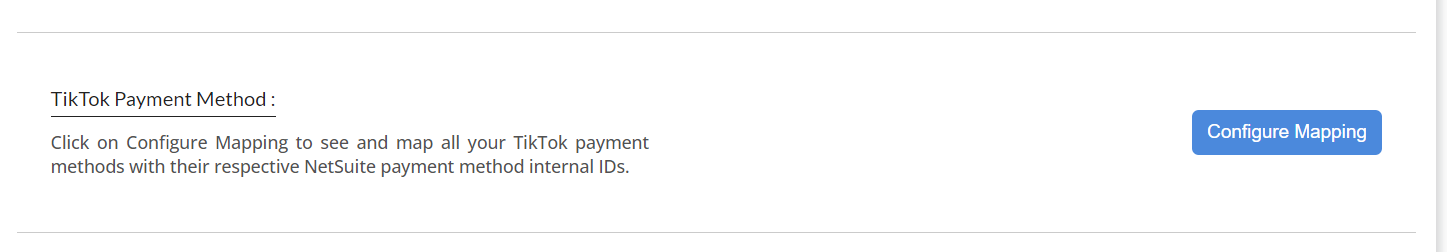 If you want to map a TikTok payment method with its respective NetSuite payment method internal ID, please click on the Configure Mapping button.