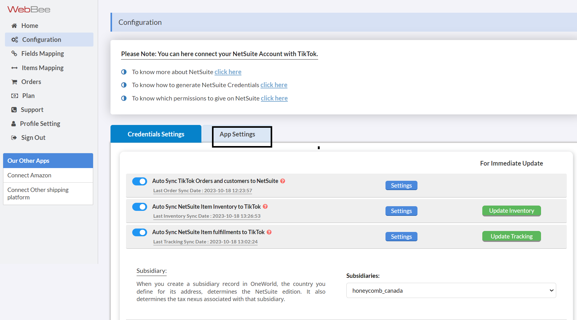 TikTok & Oracle NetSuite Integration via Robust NetSuite Integrator app: Configuration Page Overview