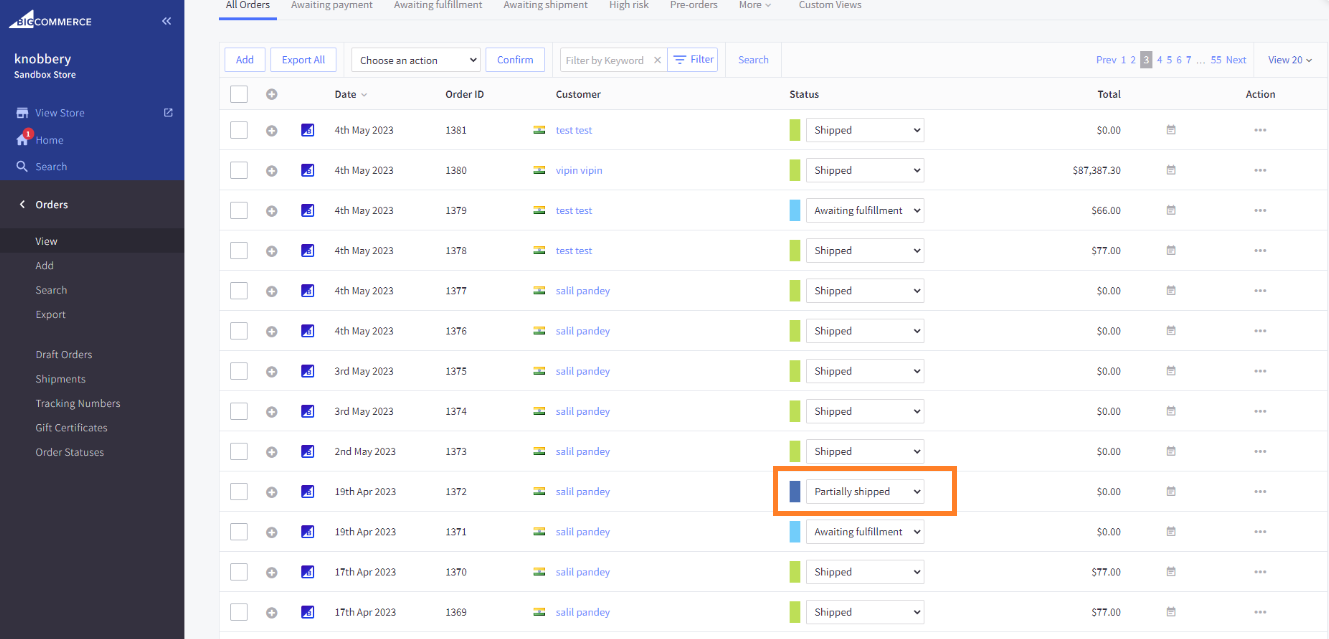 As soon as an order gets placed inside your BigCommerce store and it is imported to our app as accepted by Amazon. Then some of the items start getting fulfilled, as a result, our app changes this order's status to Partially Shipped. Or when all items are fulfilled, as a result, our app changes this order's status to Shipped at BigCommerce.