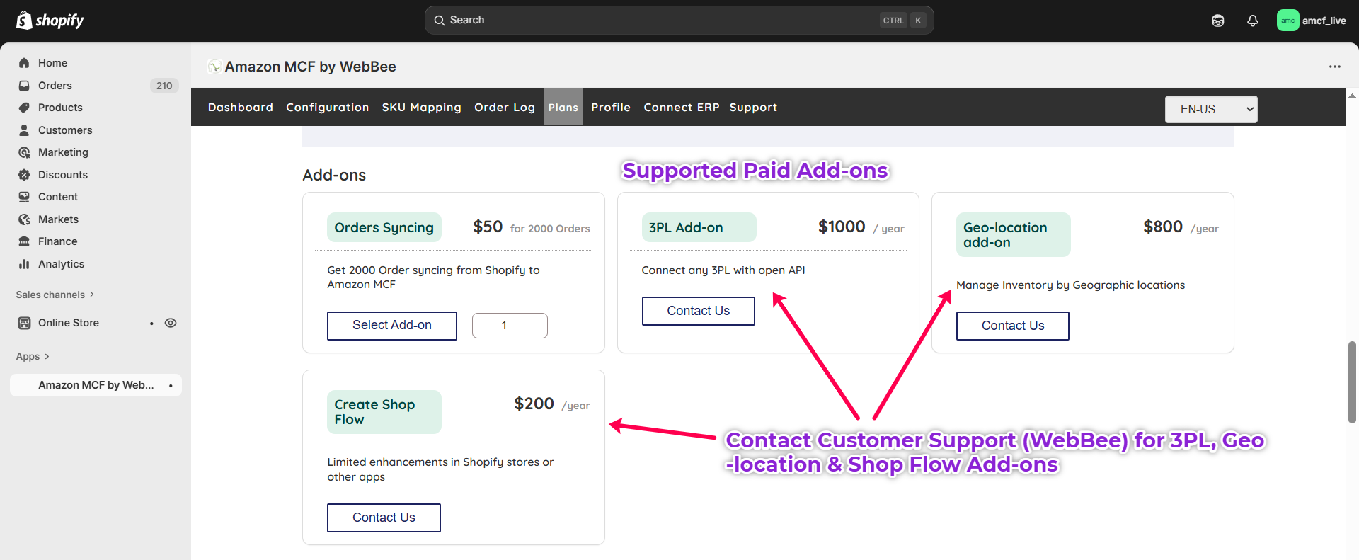 My bundle options are blurred, is this due to the limited my current plan in Amazon MCF by WebBee App?