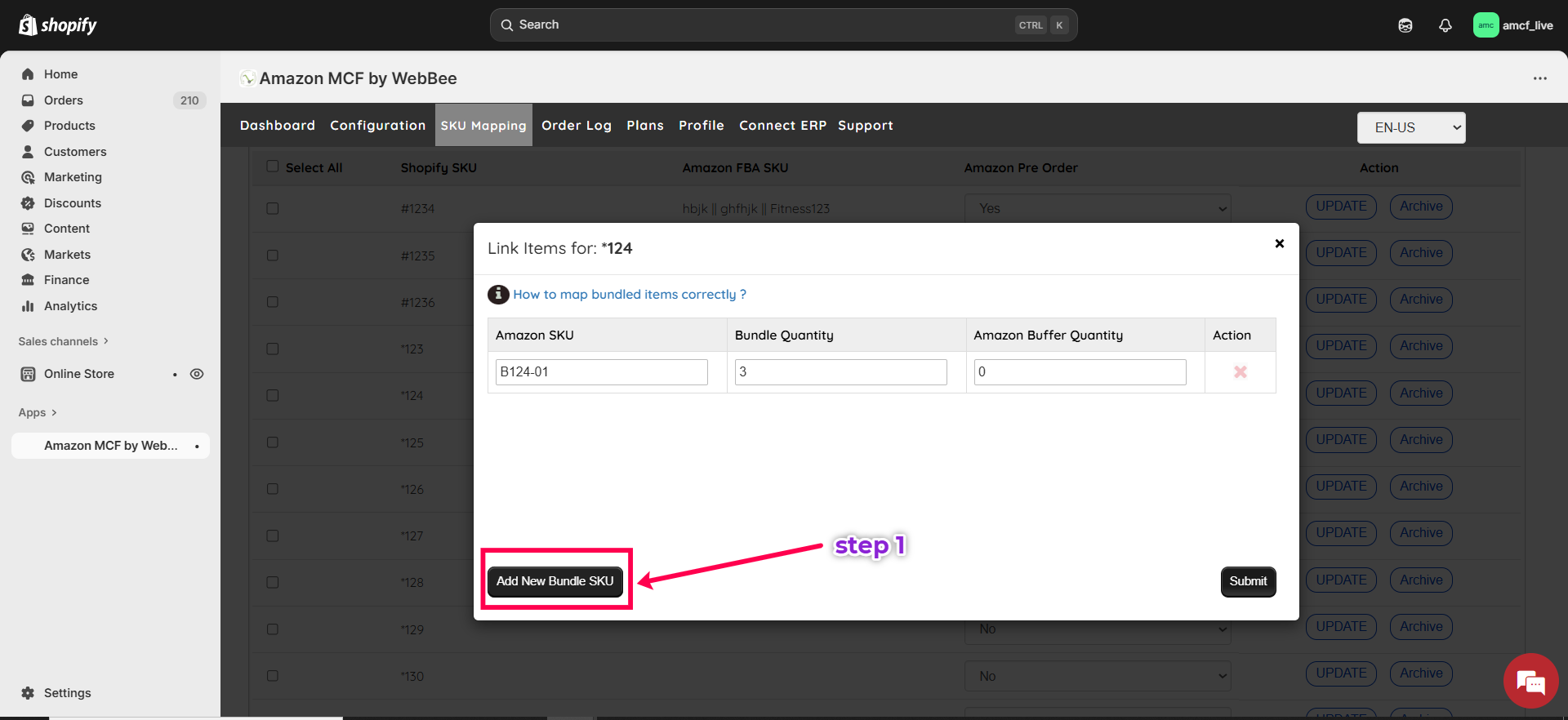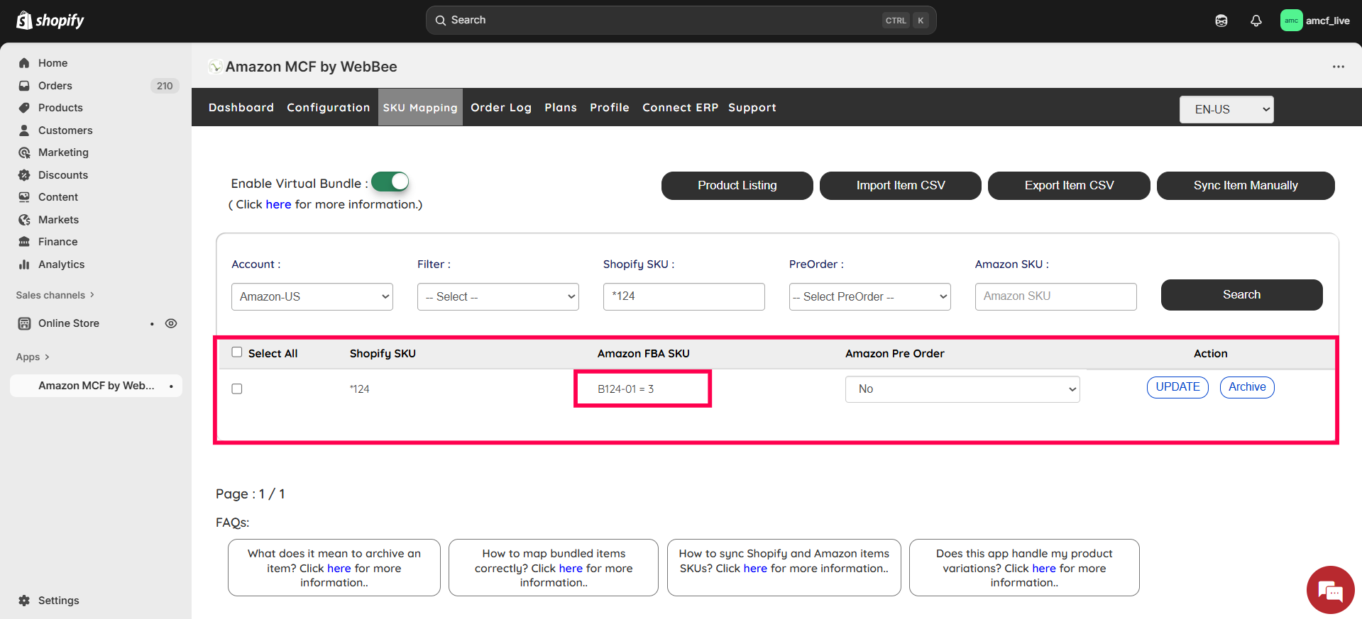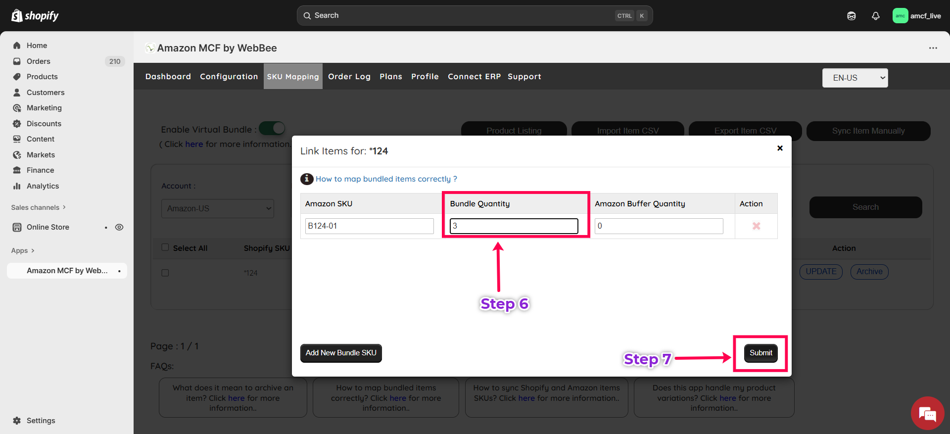 There are two methods to create a virtual bundle in the AMCF Shopify app. Either make a bundle based on quantity or make a bundle with multiple Amazon SKUs.