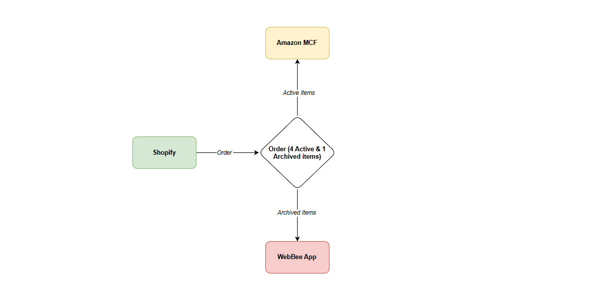 Example: if you place an order containing 5 items (4 active items & 1 archived item), then the 4 active items will sync to Amazon MCF, and that archived item will not go to Amazon MCF.