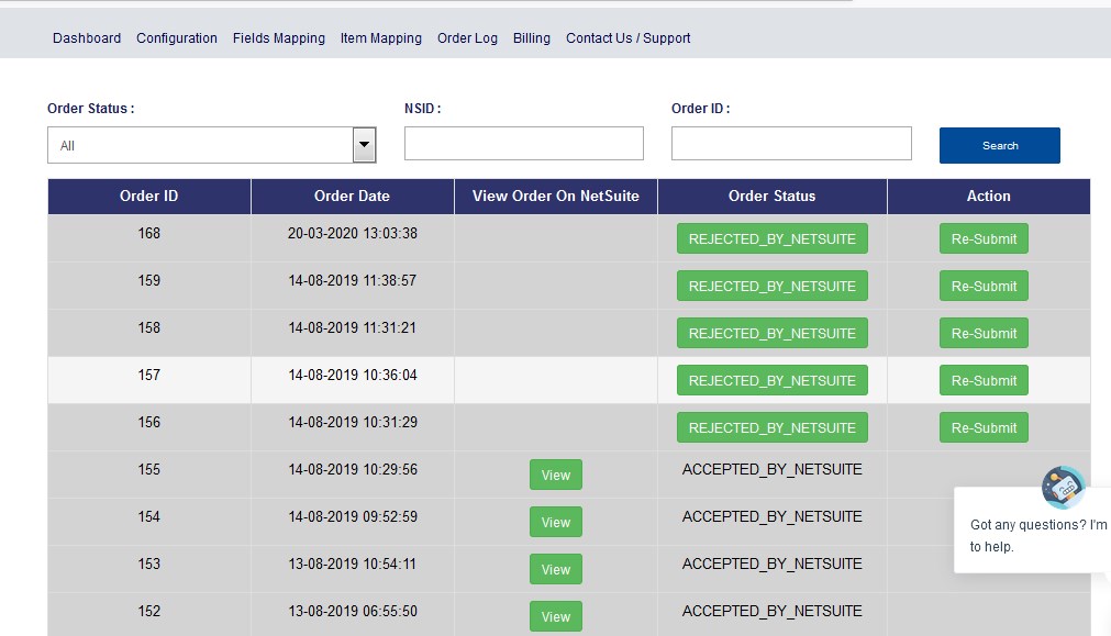 a server maintenance procedure than on the order status is shows as ‘Rejected_By_NetSuite’