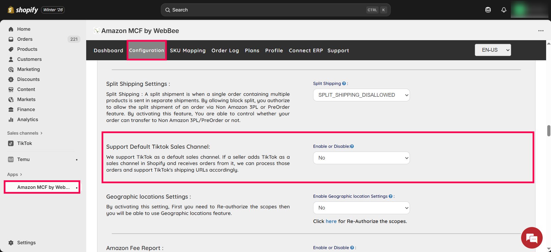 How to fulfill Shopify sales-channels orders with Amazon MCF using WebBee?