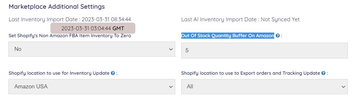 For Instance: If you set "5" quantity in the field, when an Amazon item inventory quantity goes below set value or equal to that value then the Shopify inventory will be updated to 0