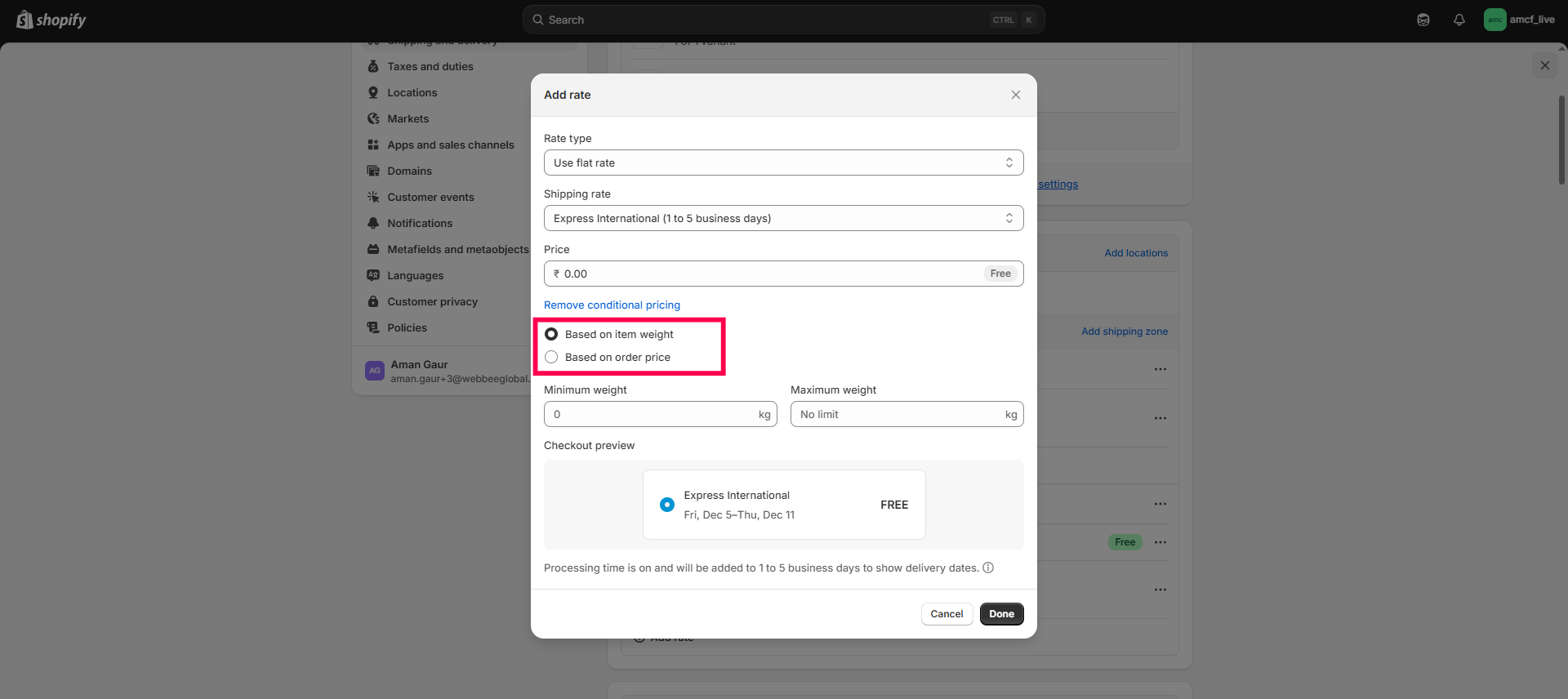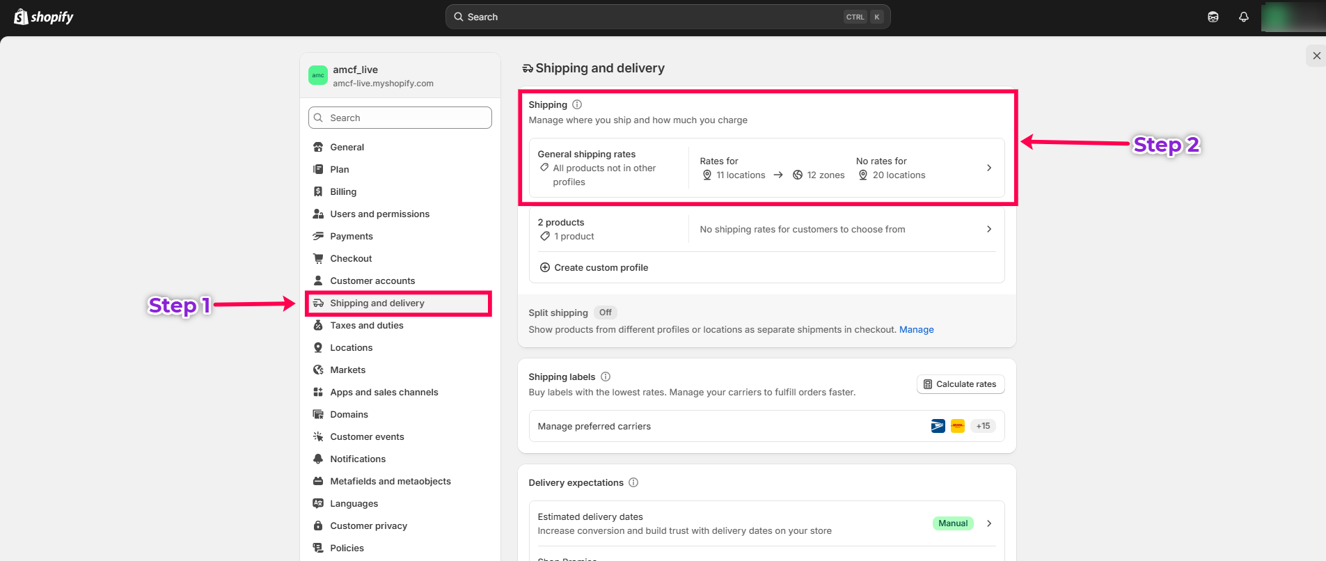 2. Shopify default shipping speeds: You can enable these shipping speeds from Shopify Shipping and Delivery settings.