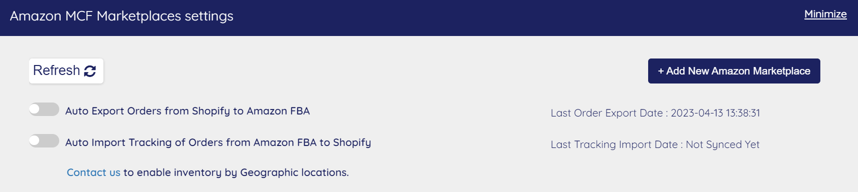 Please check the order sync and tracking sync, both toggles should be turned on in our app in Amazon MCF marketplaces settings under configuration.